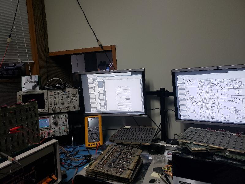 Working on a DEC PDP-8/E, a 12-bit minicomputer built in 1969. It needed some power supply repairs and the somewhat complex diagnosis of several failed chips within its processor.